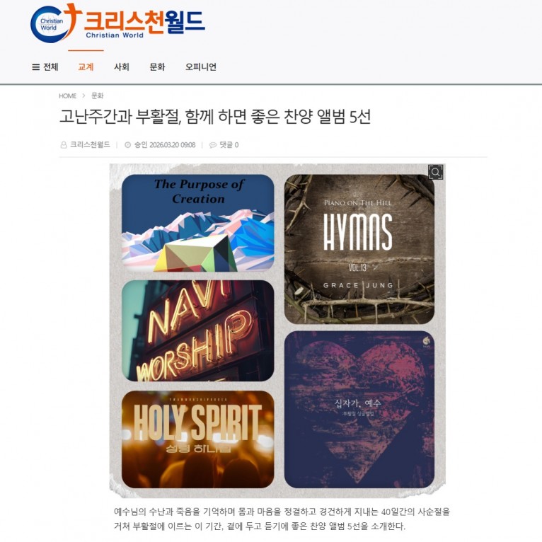 뮤직타임 [기획기사] 고난주간과 부활절, 함께 하면 좋은 찬양 앨범 5선(크리스천월드)