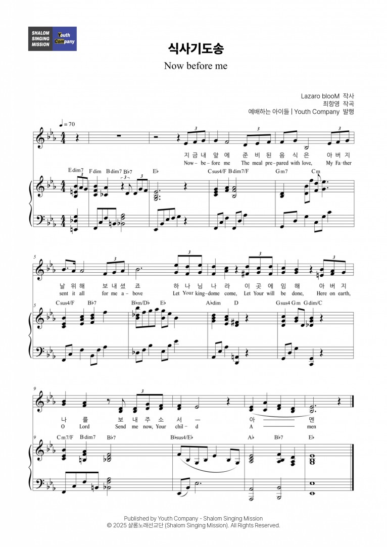 뮤직타임 [악보] 식사기도송 (Now before me) - 예배하는 아이들 (예배하는 아이들 Vol. 1 - 예배)