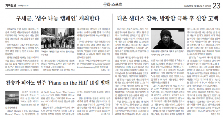 뮤직타임 [기사] 찬송가 피아노 연주 ‘Piano on the Hill’ 10집 발매(기독일보)